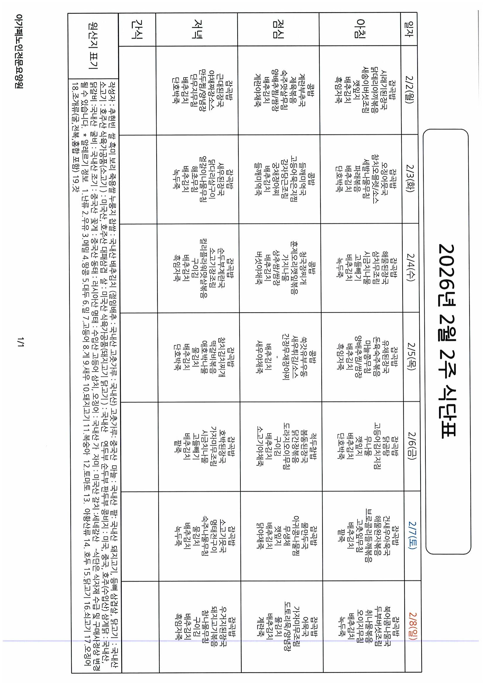 ´ÙÀ½±Û 2026³â 1¿ù ¸¶Áö¸·ÁÖ ¿µ¾ç½Ä´ÜÇ¥
