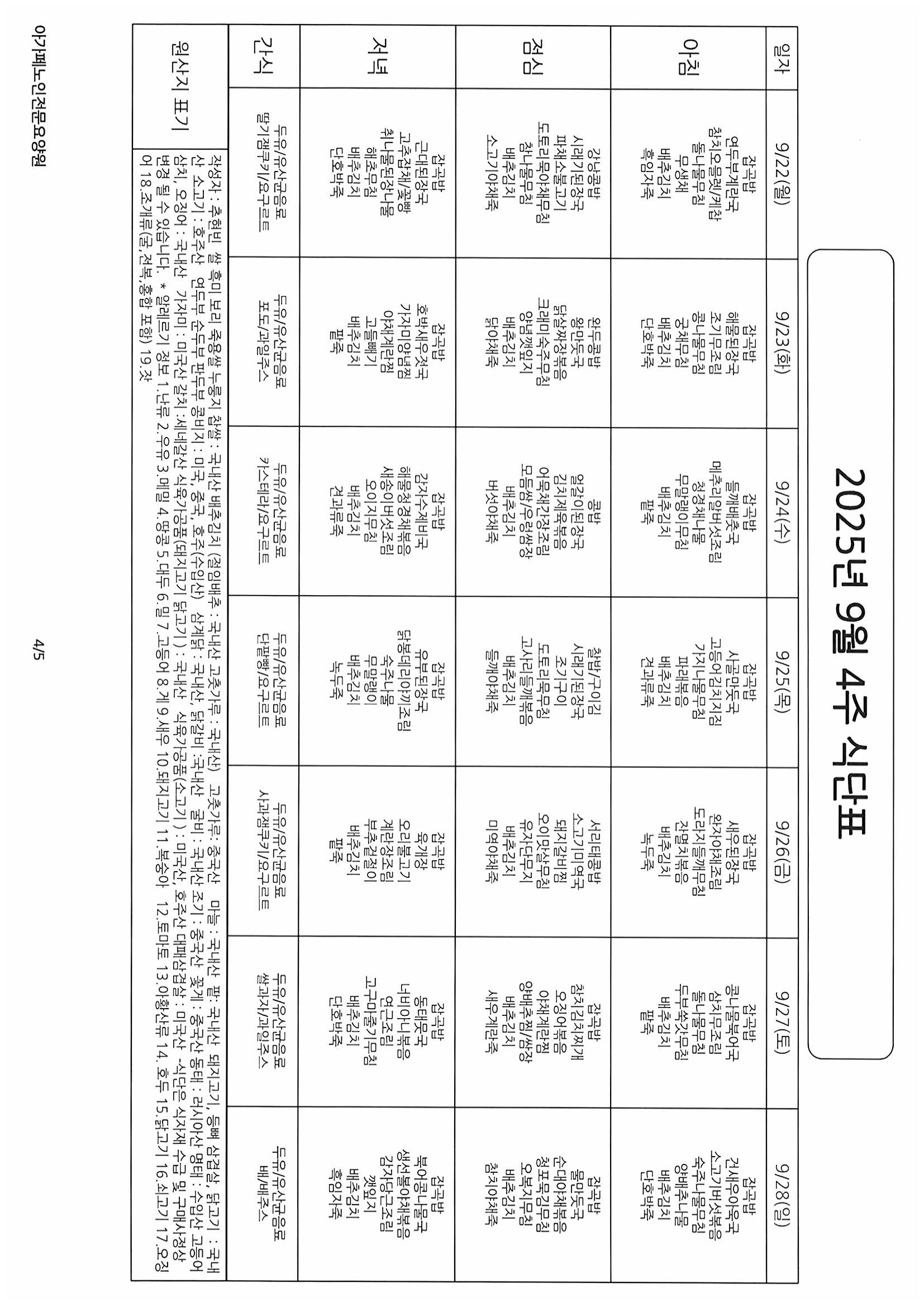 ÀÌÀü±Û 2025³â 9¿ù ¸¶Áö¸·ÁÖ ¿µ¾ç½Ä´ÜÇ¥