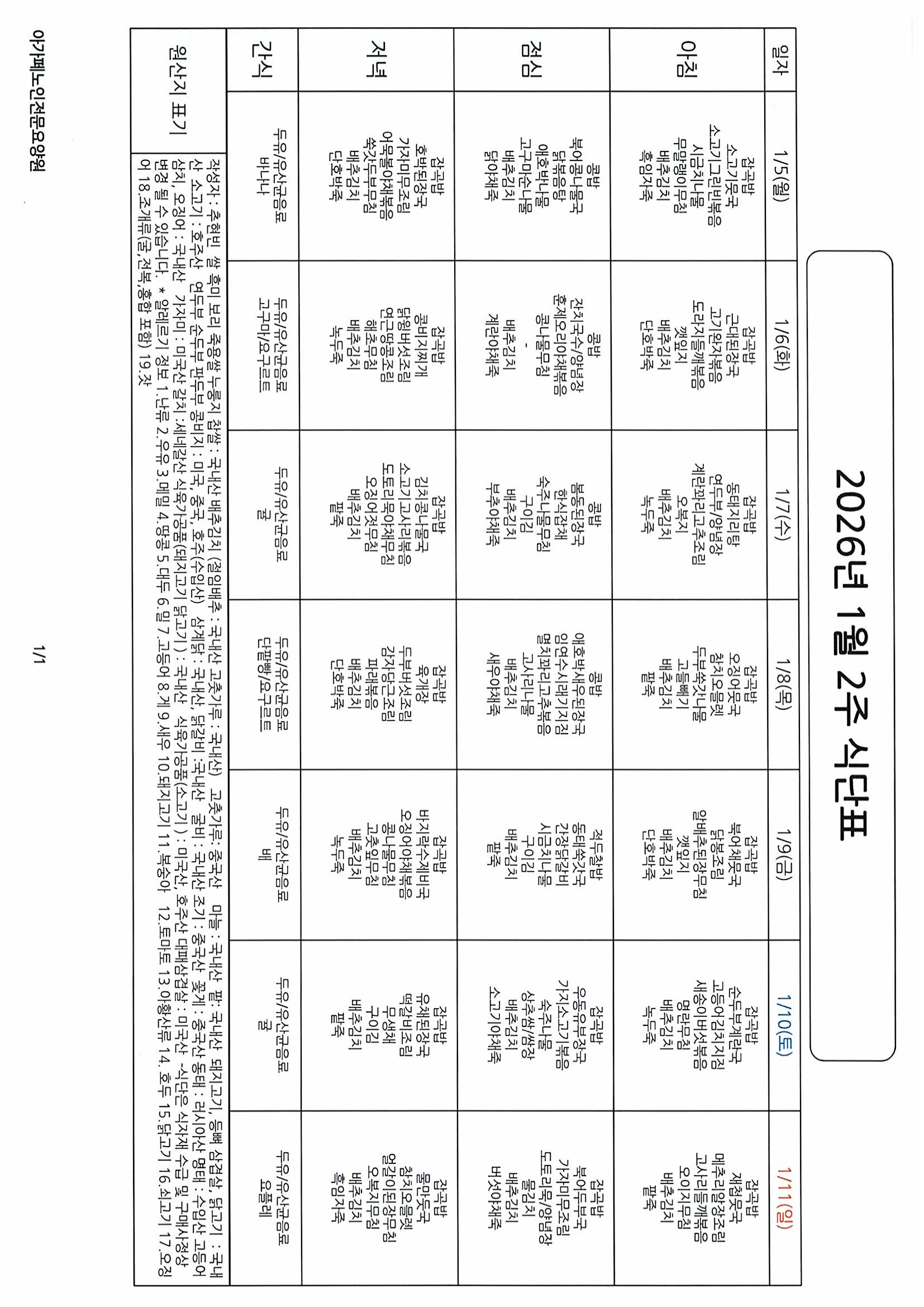 ´ÙÀ½±Û 2025³â 12¿ù 5ÁÖÂ÷~2026³â 1¿ù 1ÁÖÂ÷ ¿µ¾ç½Ä´ÜÇ¥