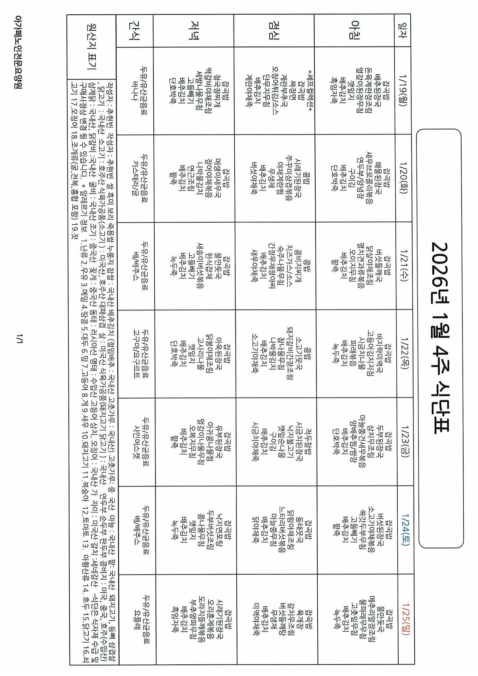 ÀÌÀü±Û 2026³â 1¿ù ¸¶Áö¸·ÁÖ ¿µ¾ç½Ä´ÜÇ¥